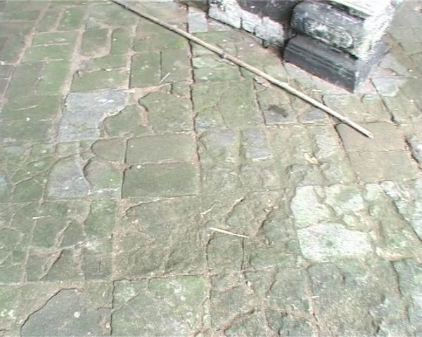 当你看到这些精美的木雕和隐约可以看到模糊的壁画,也许还能想象当年这所客家大宅鼎盛时的辉煌。地面是用方砖铺就的,由于时代久远,方砖的表层已经开始脱落,变得凹凸不平了。