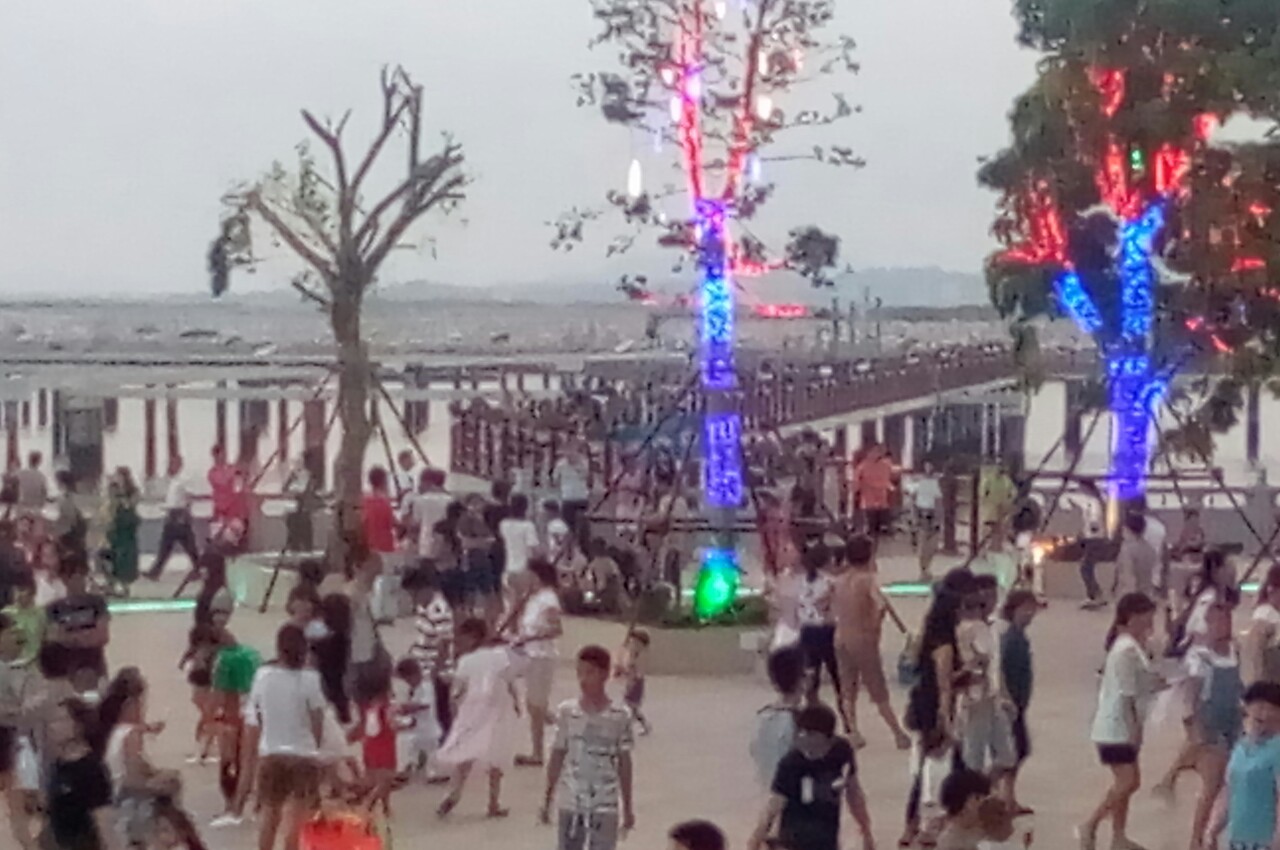 其实平常都有几多人徒步,特傍晚,前段时间不知是何因?清理迁移海湾水闸前面的集中箱与平整铺设下路面与周边,喜欢在此徒步民众可直接走过海湾水闸前面的绿道,而不会走落下面沿海公路~~再往前再步上台阶走绿道~~
