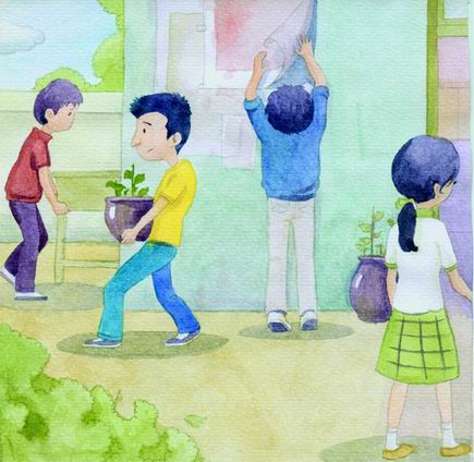 他转身了嘛,我就信步走向教室