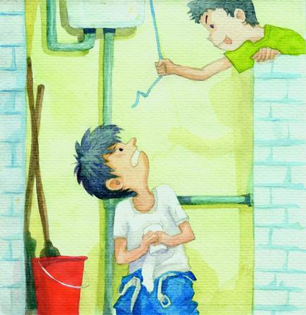 受了打击后,丸子整整一个礼拜没有洗脸,没有刷牙,没有洗脚,整天躺在床上,饭都是我们帮他买的,连碗都是我们帮着洗的。终于一个礼拜后丸子从床上起来了,说要自己买饭。丸子:“我躺了一天以后就已经不再悲痛了,不过,继续躺着的话,有人会帮我买饭洗碗,所以就懒得起来了,结果,你们每天都给我买鱼,我最讨厌吃鱼的,而且,你们帮我洗的碗,跟没洗有什么区别?我实在受不了了!”