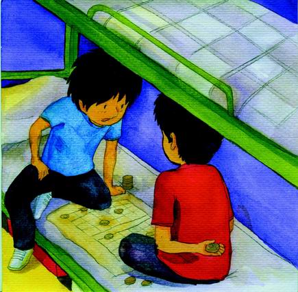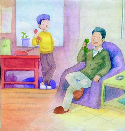 在进行了九局五胜的飞行棋比赛后,决定了用丸子的电话卡打电话给山贼。本是依据定胜负的,每次都是书的人耍赖,于是就变成三局两胜,继而是五局三胜,若不是我在关键时刻从抽屉里拿出了我的美工刀,恐怕我们到现在还在下飞行棋。这时候已经是凌晨三点钟了……