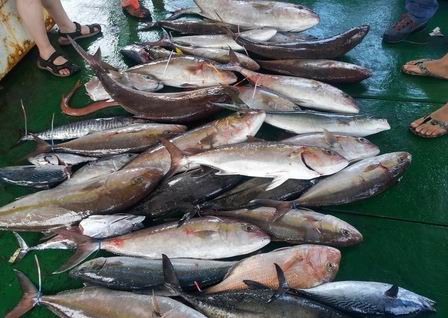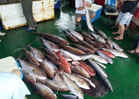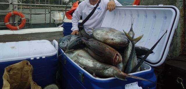 出南油回来的钓友收获往往非常多,吞拿鱼,章红,烟仔(家里叫血冠),石斑,大红友......大的近百斤一条.