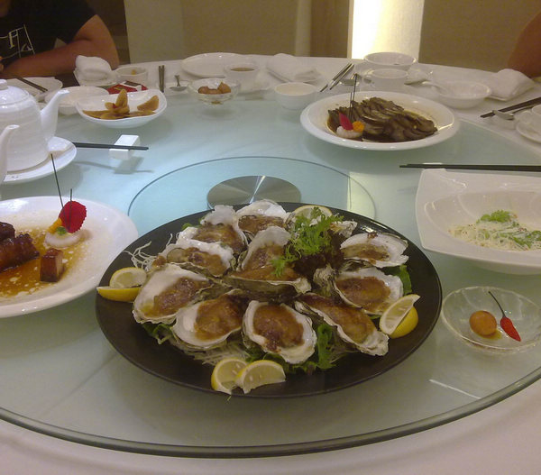 这碳烧生蚝可是他们的招牌菜,用芝士烤的,美味得想连壳都吃掉,下回请教下他,如果肯教我回水东摆摊卖好了.
