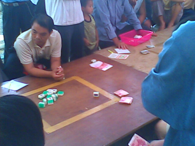 今天赶到赌档的时候已接近尾声,听说赢了钱的都走了,剩下都是差不多输光的赌徒,所以看不到有太大的赌注,甚感遗憾。笔者问起这样公开开赌场怕不怕公安局,他们说每天要给当地派出所进贡几百元,所以每天有不少人报案,派出所也只当不知道。