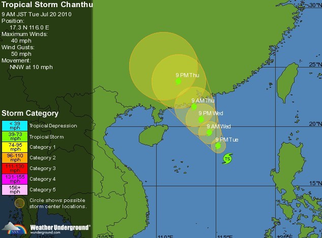 时间:7月20日8时 北纬:17.1 东经:115.9 中心气压:1000百帕 最大风速:18米/秒 风力:8级 移动速度:15公里/时 移动方向:北西 7级风圈半径:150公里 10级风圈半径:0公里 (screen.width*0.8-70)) this.width=(screen.width*0.8-70)'>