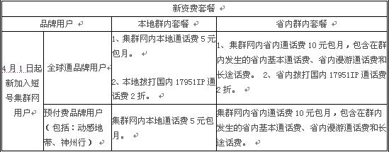 六、短号集群网业务扣费开通时间及取消方法