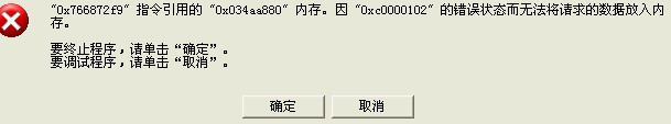 iexplore.exe应用程序错误 ,"0x766872f9"指令用的"0x034AA880"内存.因"0xc0000102"的错误状态而无法将请求的数据放入内存 [attachmentid=81912] 救命~!