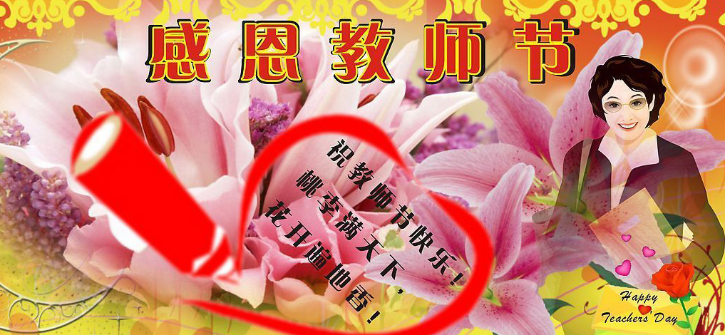 <span style='font-family:'> 老师是平凡的,但又是伟大的,记得有一首诗,是这样赞美老师的: 四度春风化绸缪, 几番秋雨洗鸿沟。 黑发积霜织日月, 粉笔无言写春秋。 蚕丝吐尽春未老, 烛泪成灰秋更稠。 春播桃李三千圃, 秋来硕果满神州。</span> [FONT=宋体]对这首诗,因为喜欢,所以引用。因为对老师怀有一份深深的感情,所以在这里献上我至真至诚的祝福(见下图):[/FONT]