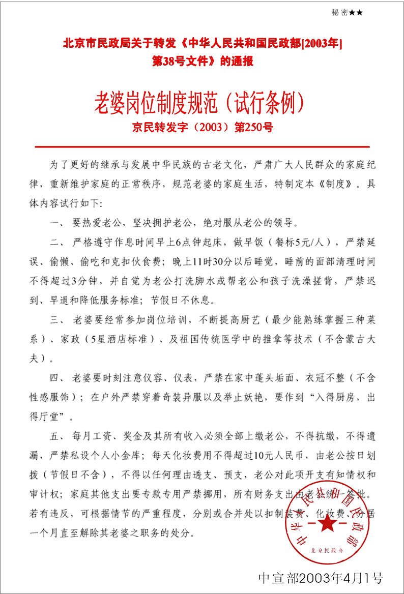 <<老公岗位制度规范>>