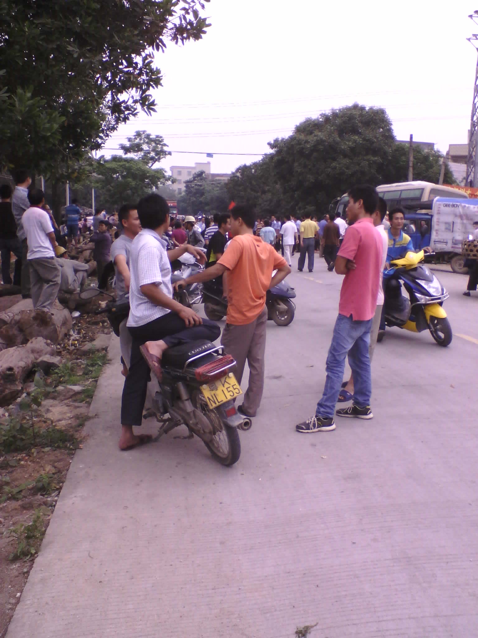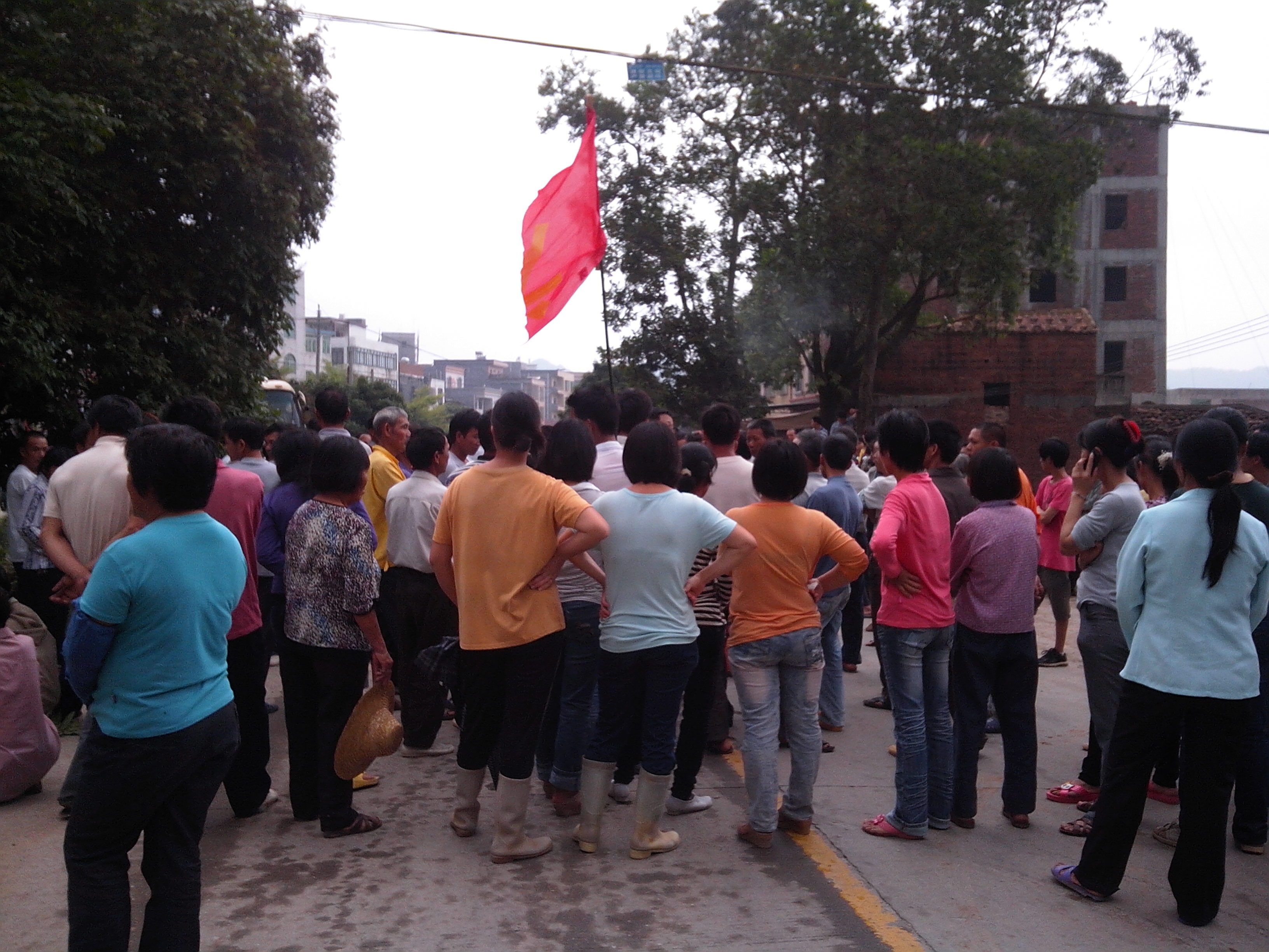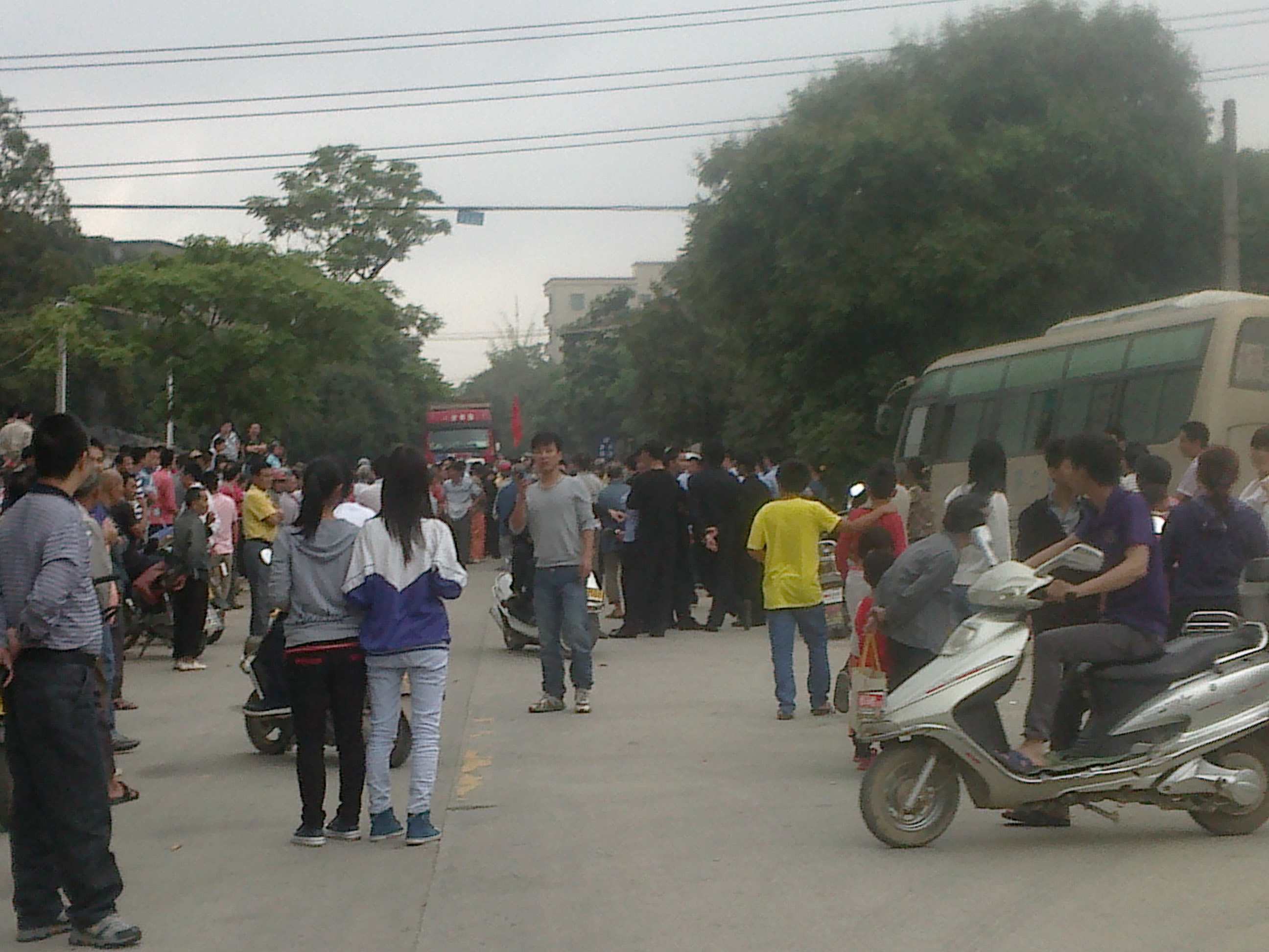 罗坑镇白沙村民拦七那路! 据说是工厂排污问题。