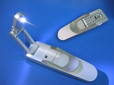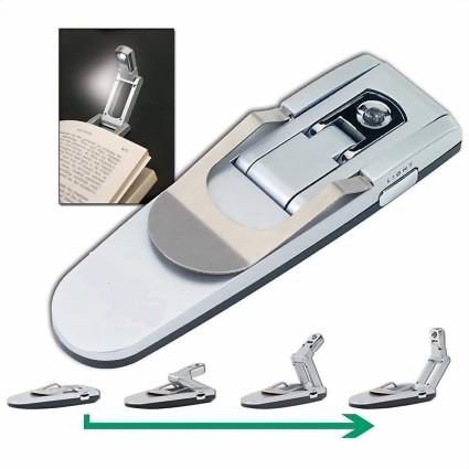 这是一款适合您和您的好朋友`好同学精美的礼品,用的时候一按钮它就自动翻转成一个小台灯,可以夹在书本上,也可以夹在电脑键盘上。不影响身边的人休息。在停电时使用很方便,是爱读书的人士的好伙伴。既实用,又精美大方。不用的的时候,把它再收回如图的片状,携带方便(如UT斯达康小灵通般大小质量)。