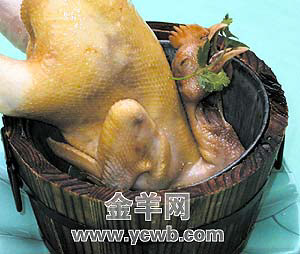 在珠江美食广场有一家主营电白菜的茂澳渔港,门庭外,“米走鸡gogochicken”Logo比店名还招人眼,可见这里的鸡的确不一般。“走地”意味着自由,这些放养在乡野的鸡活动自如,以自然为食,虽然个头小一些,但味道却是特别鲜美。除了普通的白切做法,这里的招牌主打是木桶鸡和烧鸡。木桶鸡是用花旗参、红须参、桂圆肉等八种调料入味,放在木桶里蒸熟,有药材和木质的清香,鸡的肉质更为鲜美。