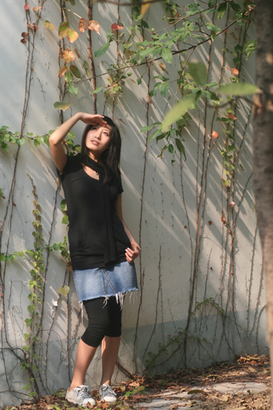 很有气质的妹妹,青春正好,简单的装束,牛仔短群加美腿,观感可以很美妙,整体一个邻家小妹方长成的美好。可惜那黑裤子画蛇添足,流俗了。。。
