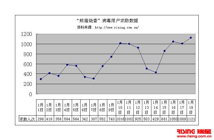 根据瑞星客户服务中心的监测,目前使用国外杀毒软件用户的升级仍然有很大困难。与此同时,国内互联网上出现的新病毒数量却有很大增加。自光缆断裂到1月22日止,瑞星全球反病毒监测网已经截获20205个新病毒,也就是说瑞星杀毒软件平均每天要升级近千个新病毒样本。
