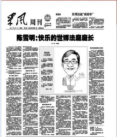 熟悉陈雪明的那些老同事们却对他上任世博法庭庭长一事一点儿也不惊讶。与陈雪明共事多年的周柏良说:“听到世博庭长是他,我第一感觉就是人选对了!”