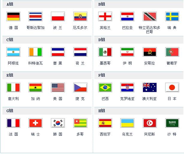 2006年德国世界杯小组对阵情况!