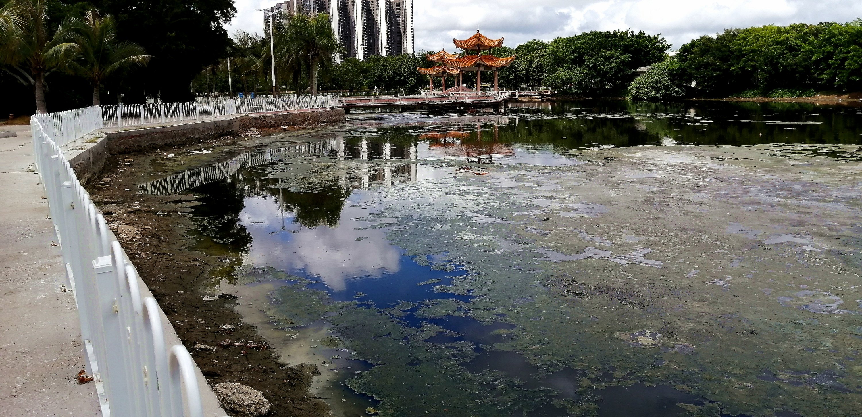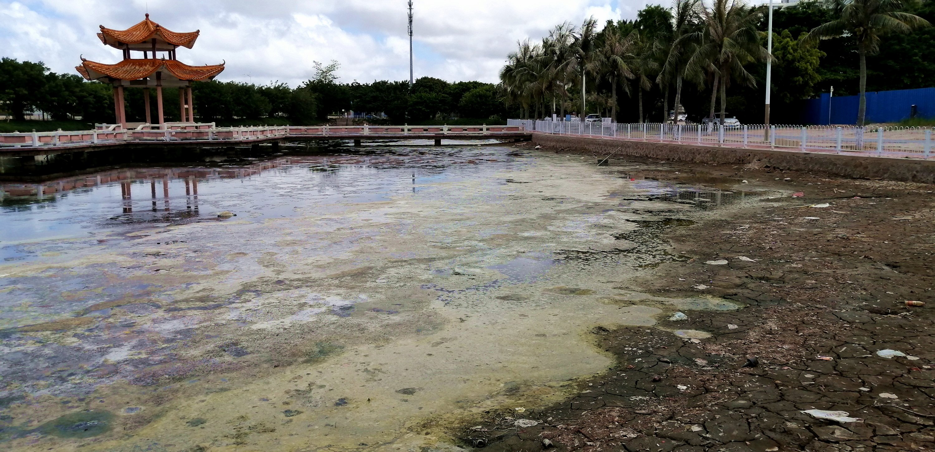 东湖臭水塘应当清除淤泥,应付检查用海水浸不是长久之计。也不符合双创文明的宗旨。