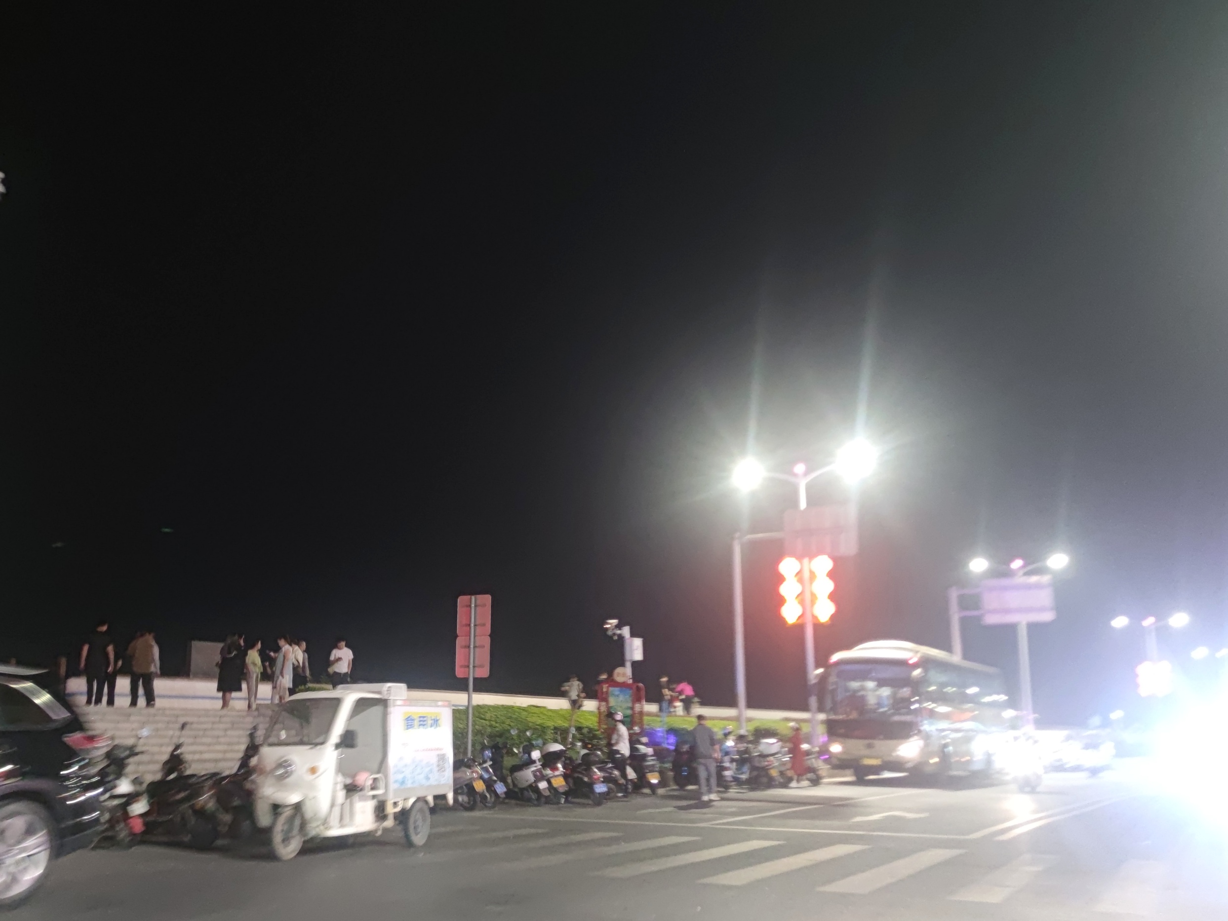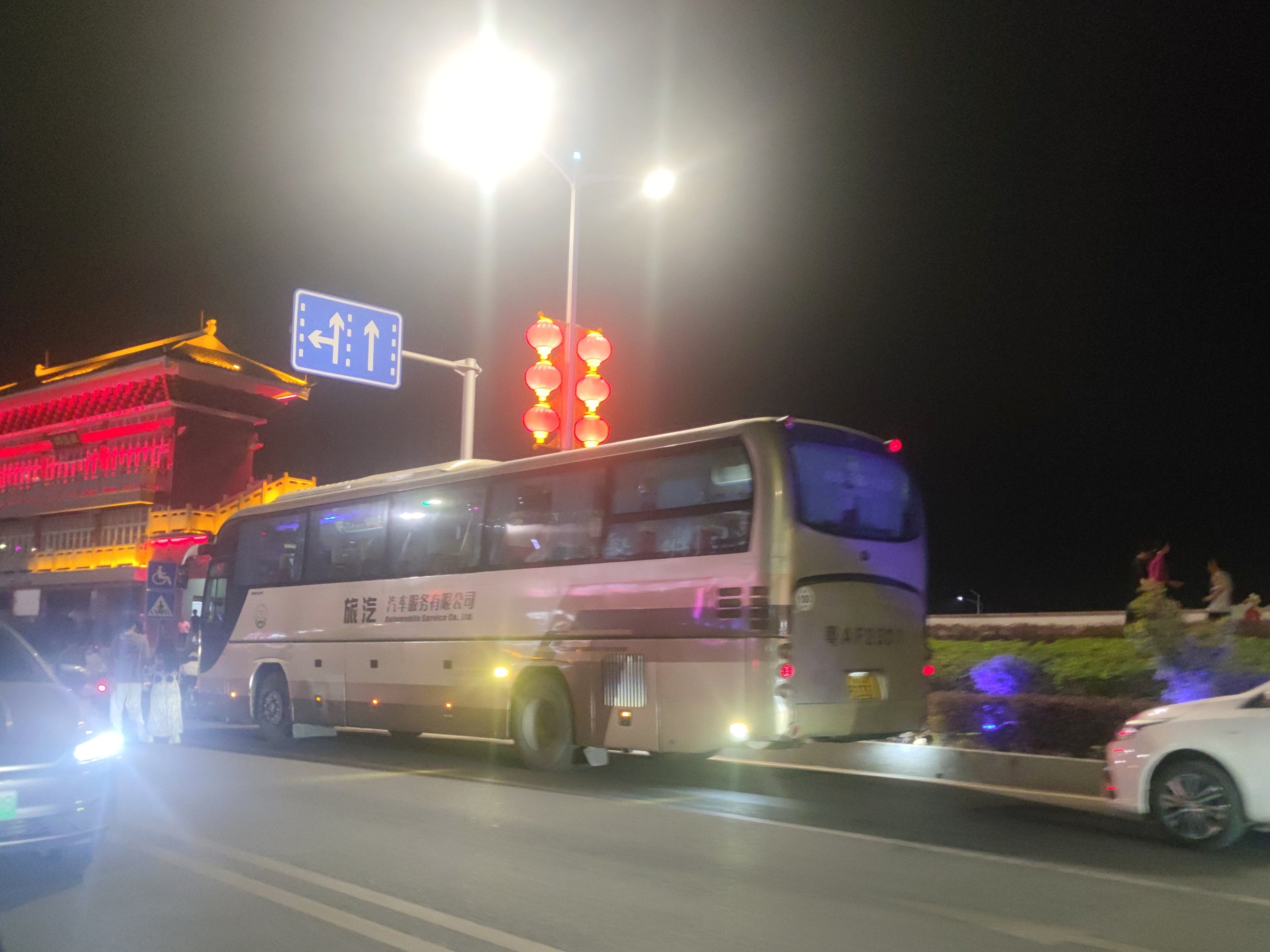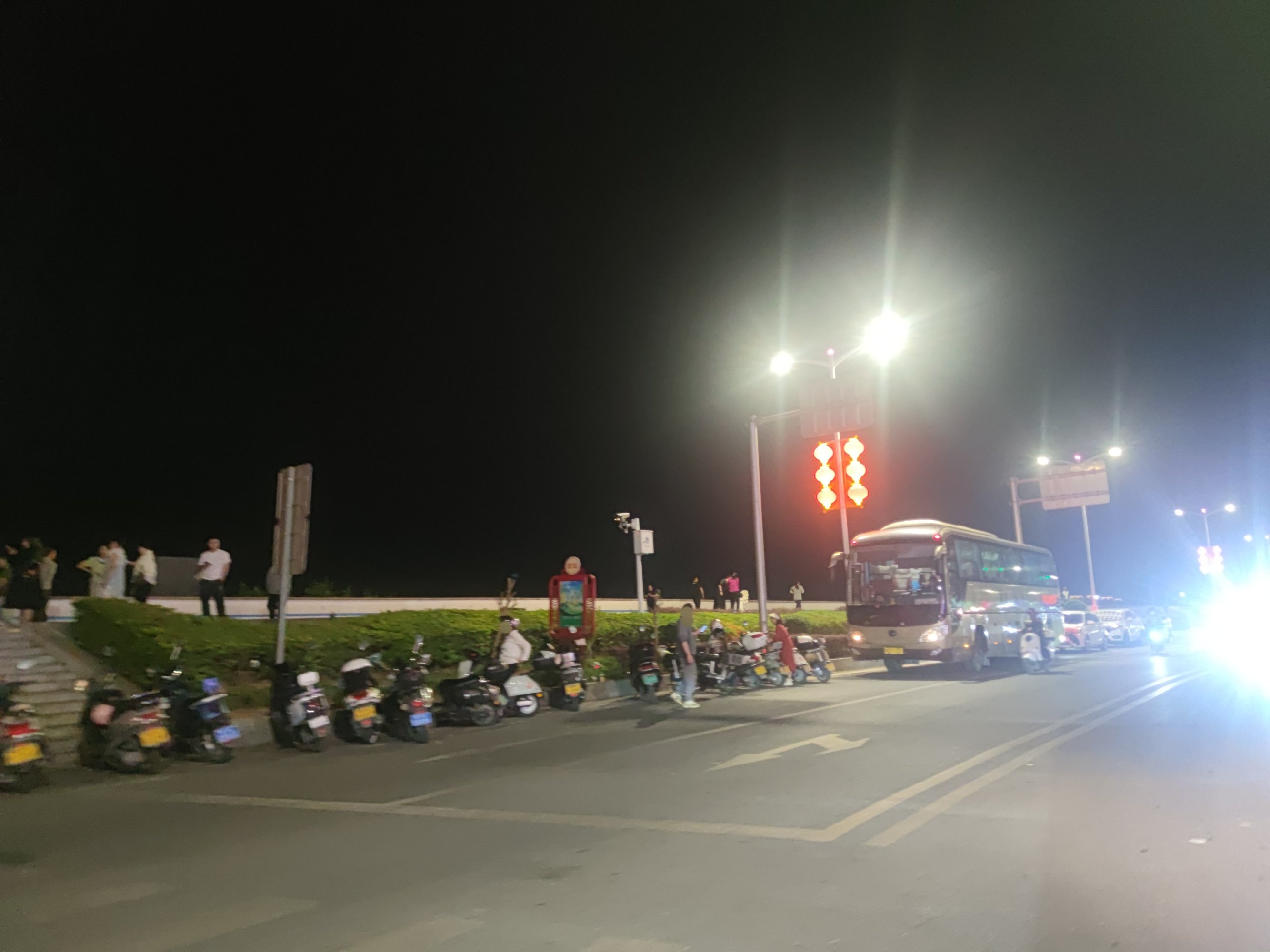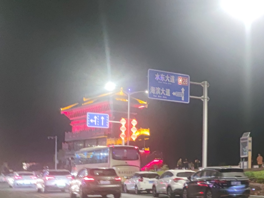 分享 水东海路夜晚之~旅游大巴的到来