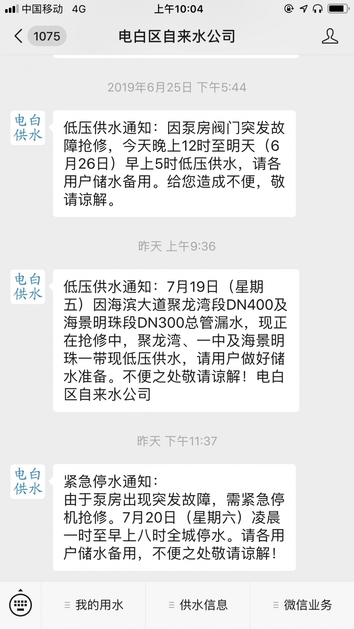 S shalaoscnu 幼儿园 注册 2005-11-25 消息 7 反馈评分 0 点数 0 2019-07-20 #1 最近天气炎热 洗个澡应该蛮舒服的 可为啥这段时间老是停水呢?白天停,晚上停,深夜也停,机房机器故障、水渠塌方诸如此类的原因……水东自来水公司,能给居民一个满意的答案吗? 附件 88C575C9-C44C-4953-A802-DE4C69CCF3E3.png 893.7 KB · 查看: 471 43896980-318C-40ED-BB9C-2B562A069A55.png 976.1 KB · 查看: 475