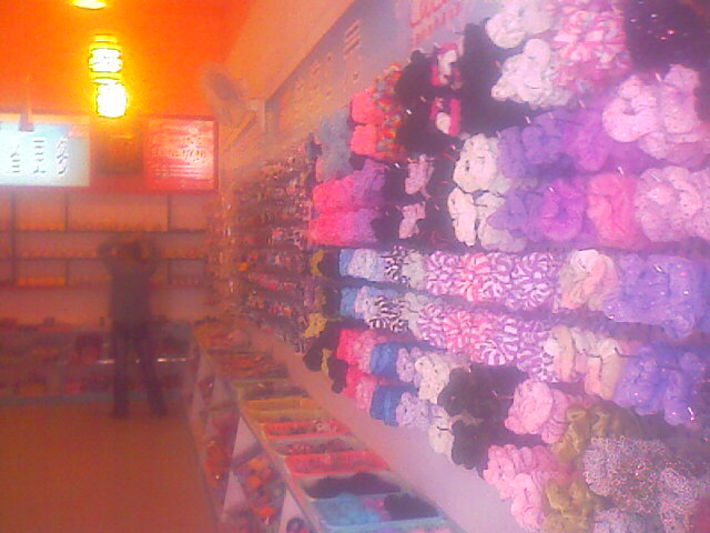 这家店的商品品种很多,有女孩子的头花、胶圈、发夹、梳子、化妆用品/工具等各种饰品,虽然很便宜,但是并不低档,我觉得比那些10多块甚至几十块的不管从款式还是质量来讲也差不多(个人认为,毕竟我是男的,对这方面没什么研究,呵呵)。还有手机袋、贴膜、小挂件和很多生活日用品,对了,还有小孩玩具和学生学习用的文具等等,总之货品很多很广,有需要的可以去哪里转转看有没有自己喜欢的,现在经济不好,而且这样低的价格可以买到这样档次的商品,已经很不错了。介绍完毕,至于好不好还是你们去过之后说了算,(*^__^*) 嘻嘻……