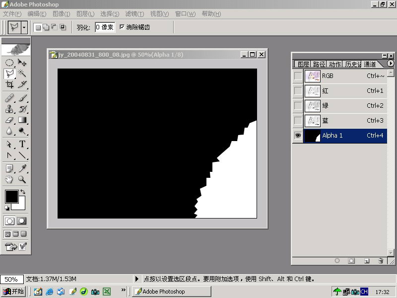 2. 用多边形套索工具画出一个封闭选择范围,并填充白色。
