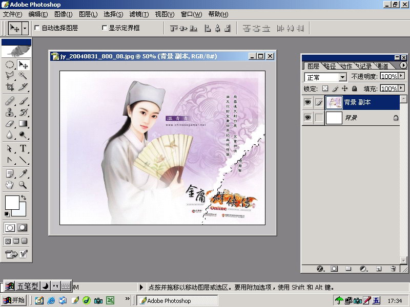 6. 用移动工具将虚线里面的部分移动。