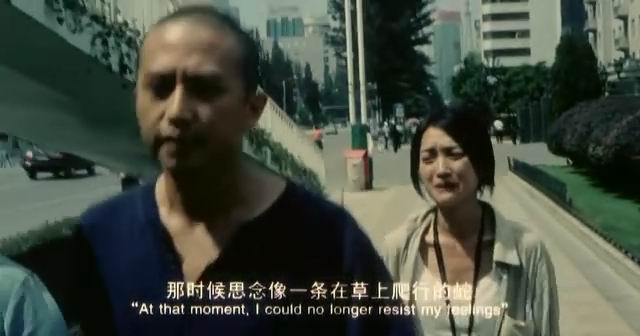 刚到这里的时候。我也是木然的。误认为是女主角一号李米的神经质表现。后来结合了剧情介绍和看到后面,我才一下子明白。这是拍摄的一个手法。女主角一号李米以这种方式在寻找着她的未婚夫――男主角方文。 李米将方文的相片全部都贴在一本杂志上专门放在后座前,供所有乘客阅看。然后她把这个故事告诉每一个乘客,甚至会问每位乘客是否见过或认识方文。她不确定这种方式是否有效,但她没有放弃。