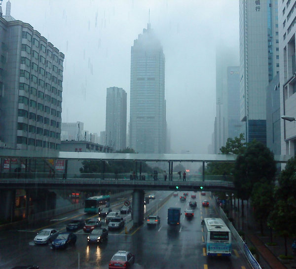 哈哈,今天我也拍了一张,这边也好大雨,大楼都入云了!
