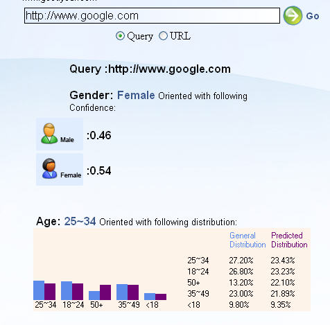 微软adCenter Labs推出一项有关人口统计学的新预测工具,能够根据你输入的域名/链接来判断浏览这个网站/页面的网上冲浪者性别。