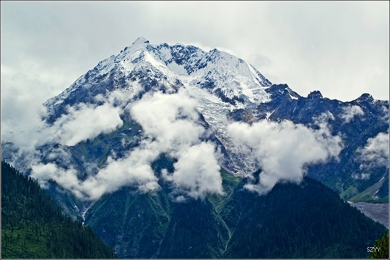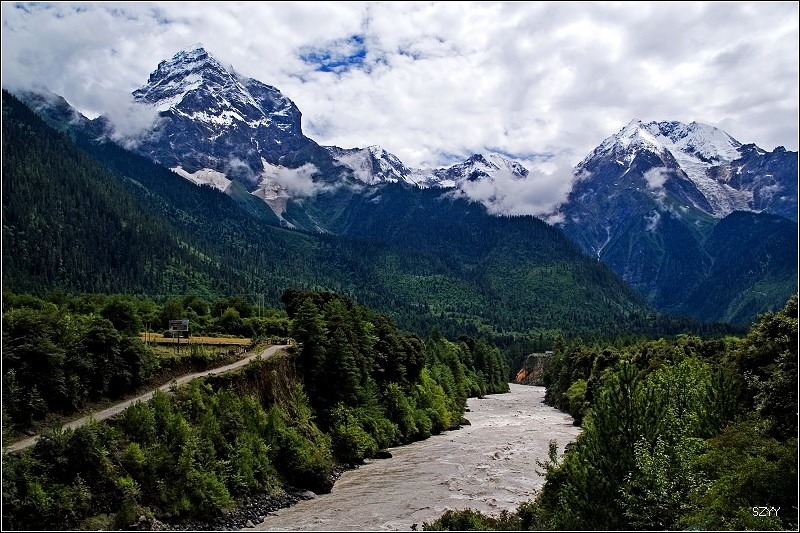 继续前进赶往通麦,我们要争取天黑以前通过通麦天险和排龙天险。一路有无数雪山相伴,蓝天白云,阳光灿烂。我们下车无数次进行拍照,这就是自驾游的好处,可以随时停车。