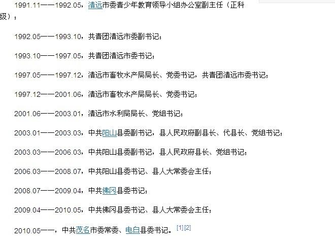 QUOTE(黑眼睛 @ 2011年06月25日 Saturday, 12:42 PM) 2010年已经是电白县的县委书记? [snapback]3168177[/snapback] 是网络上的失误吧,应该是2011年5月