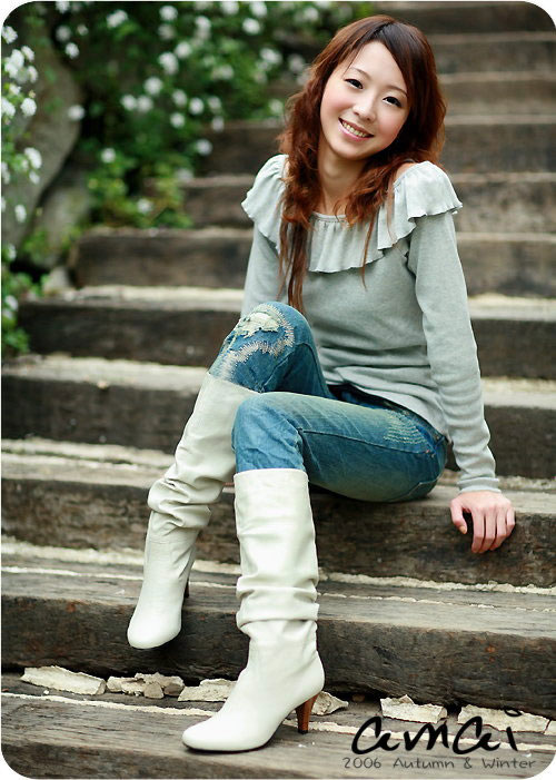黑色靴子虽然不会出错,但在春季,它远远没有白色靴子来的惹眼。今春穿搭建议:中长高度(靴腿30厘米),较为宽松的高跟白色靴子,是比较容易搭配的。