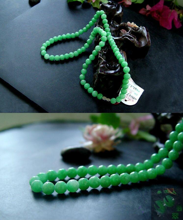 10.豆种 豆种是一种非常形象的称呼,我们知道翡翠是一种多晶体,如果组成翡翠的晶体较粗,比如大于一毫米就会很容易被肉眼看到,粗的翡翠晶体多数是短柱状,当这些短柱状晶体的边界很清楚时,看起来很像一粒一粒绿豆,所以叫做豆种。 “十青九豆”可以看出豆种的广泛性了,豆种也可以进一步分为:糖豆、冰豆,细豆,粗豆..所以高档豆种价值同样是不菲的。 高档豆绿项链: