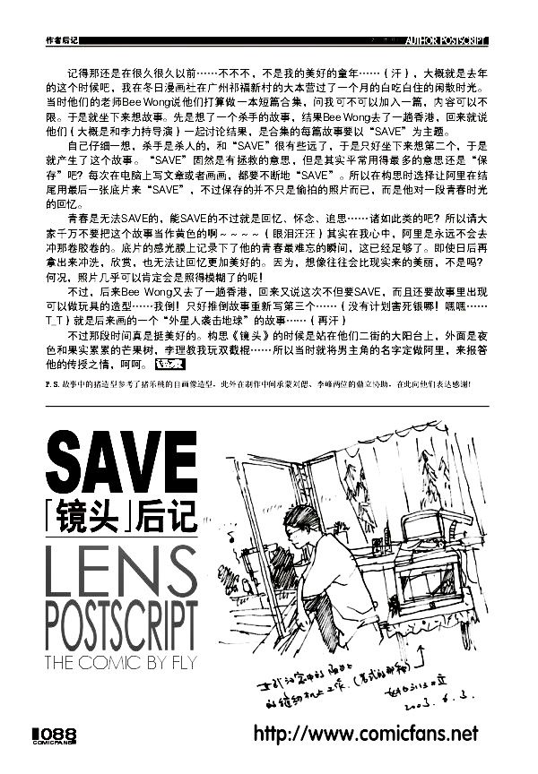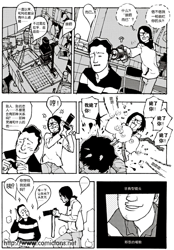 这是姚非拉发表在《漫友》34期的一篇短篇,漫画故事与姚非拉过往旧作一样,都是有着浓厚生活气息、平淡中洋溢出姚非拉漫画自身特有的学生情怀;最特别的是,《镜头》是姚非拉在广州构思、创作的,算是一部诞生地在广州的中国原创漫画故事,大家不妨细细回味呢。
