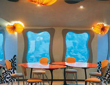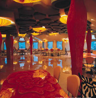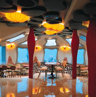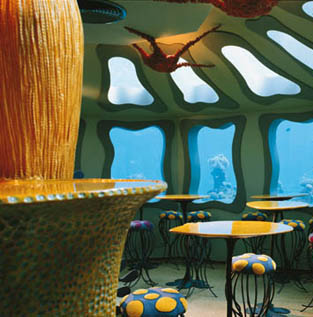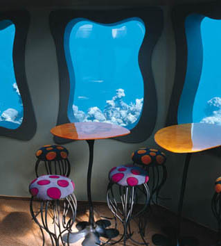 深入海底20英尺的餐厅,位於以色列南部,离Eilat湾海岸300英尺外。以海洋生物作布置设计,有水母型餐椅、海星顶灯、珊瑚灯饰及各种海草型铁花围栅等……