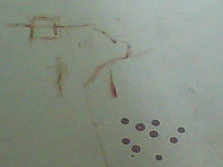 这是在四号楼下面的…跳楼后才发现的…图中用血写的字〖一中〗和九滴血