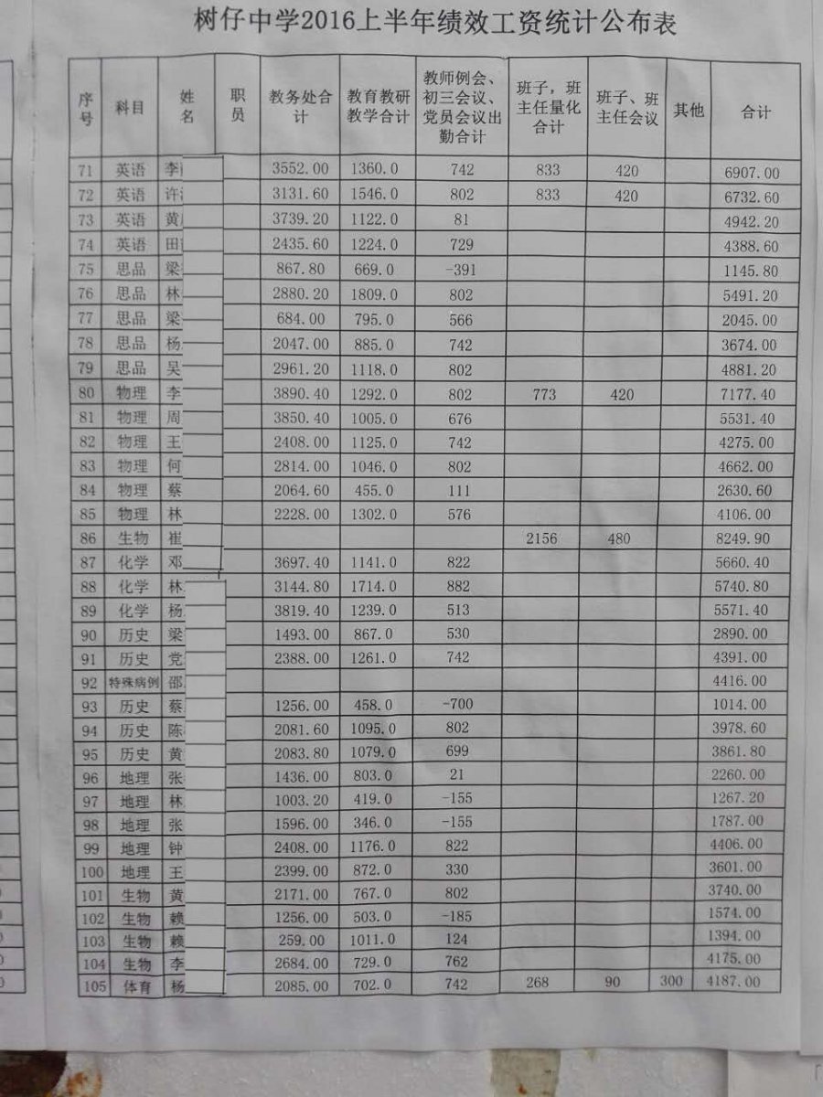 有关树仔中学绩效发放的问题 (5人在浏览)