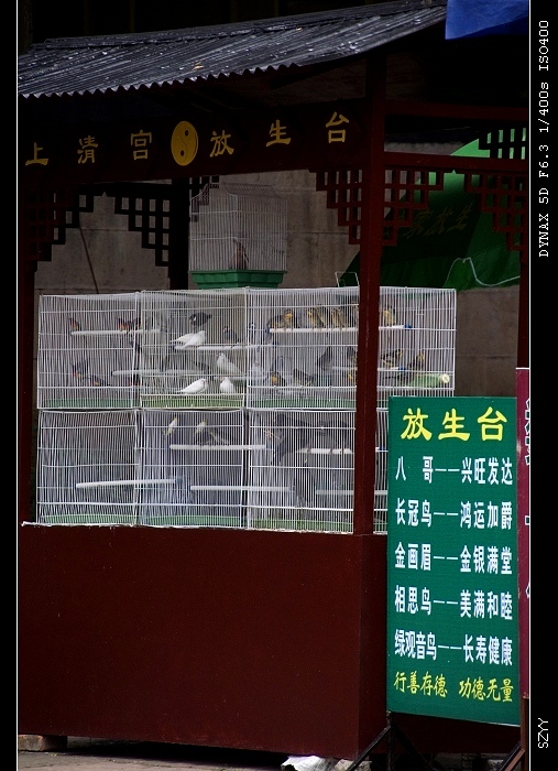 推土机 荣誉会员 荣誉会员 注册 2004-11-28 消息 2,034 反馈评分 0 点数 61 2006-10-09 #46 在上清宫外看到不少小鸟被关在笼子里,花一定的钱可以买不同的鸟"放生",所谓的"放生"其实是残害鸟类.出家人这种做法让人看了很不以为然. [attachmentid=103977] 附件 PICT1409_nEO_IMG.jpg 184.8 KB · 查看: 227